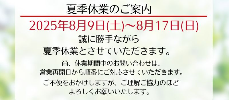 夏季休業のお知らせ